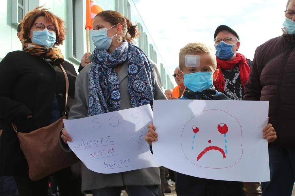 accueillait les manifestants à l’entrée du site. Au sein du rassemblement, où les écharpes d’élus et les drapeaux des syndicats étaient nombreux, on pouvait lire sur une pancarte Suppression des lits et des services, ça suffit !