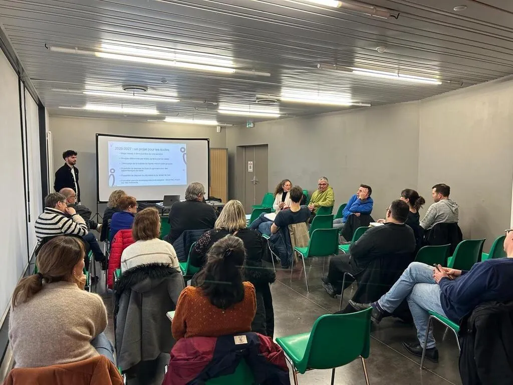 L’équipe de la Maison des projets et les acteurs locaux, sont venus présenter le nouveau fonctionnement du bassin éducatif de nage 2025. © Le Maine Libre