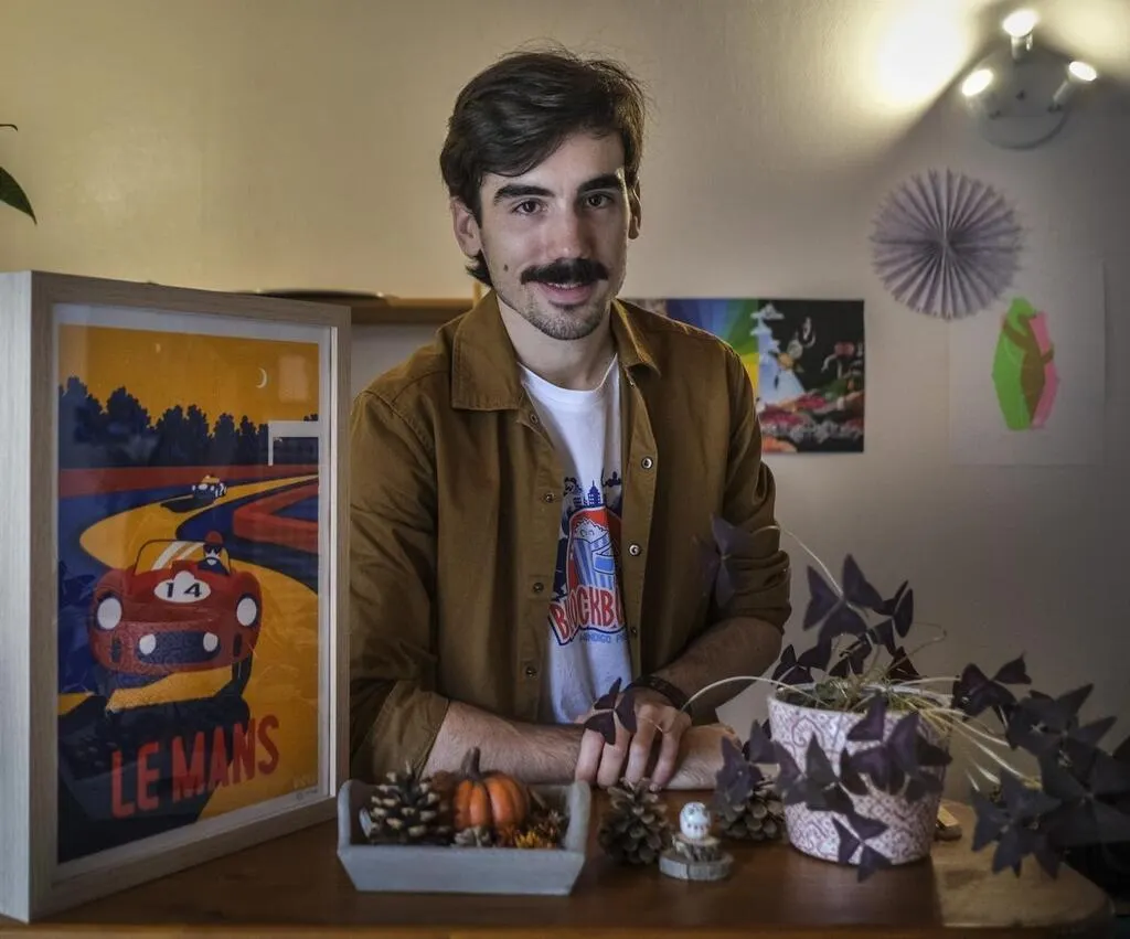 Le Mans, mardi 10 novembre 2020. Clément Fouquet utilise la technique de la sérigraphie pour réaliser ses affiches et tee-shirts. © Photo Le Maine Libre — Denis LAMBERT