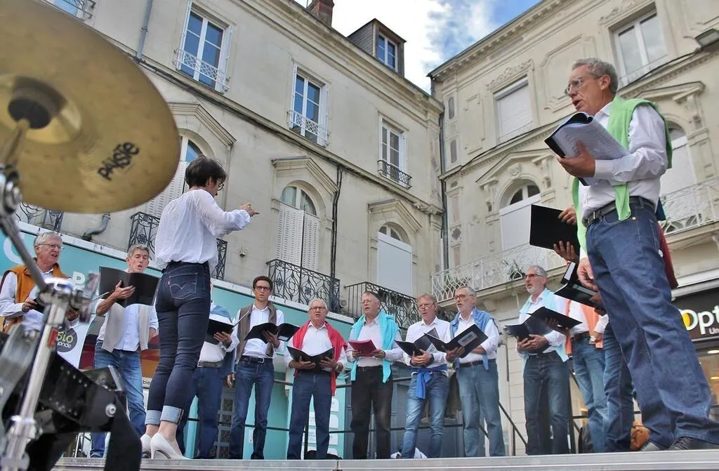 Le chÅ“ur d’hommes La Cantonade, ici en représentation lors de la fête du petit sablé en octobre 2022, à Sablé-sur-Sarthe. © Archives Ouest-France