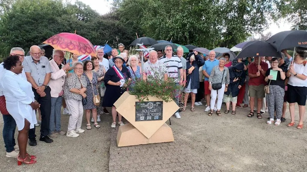 Au square Marie-Fortier, une maquette de l’avion Halifax, abattu le 23 mai 1944, a été inaugurée. © Ouest-France