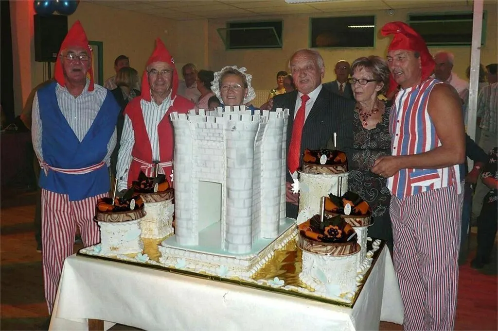 Roger Massé, ancien maire de Lavaré, est décédé le dimanche 10 novembre 2024. On le voit ici en 2008 au centre avec une cravate rouge, mis à l’honneur par les habitants de la commune. © Le Maine Libre