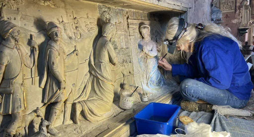 La restauration du premier retable avait été présentée lors des Journées européennes du patrimoine 2024. Celle du second est achevée depuis peu et va faire l’objet d’une présentation par les restauratrices pour les Journées du patrimoine 2025, qui ont lieu ce week-end. Les travaux sur le troisième retable (la Cène) viennent, de leur côté, de commencer.