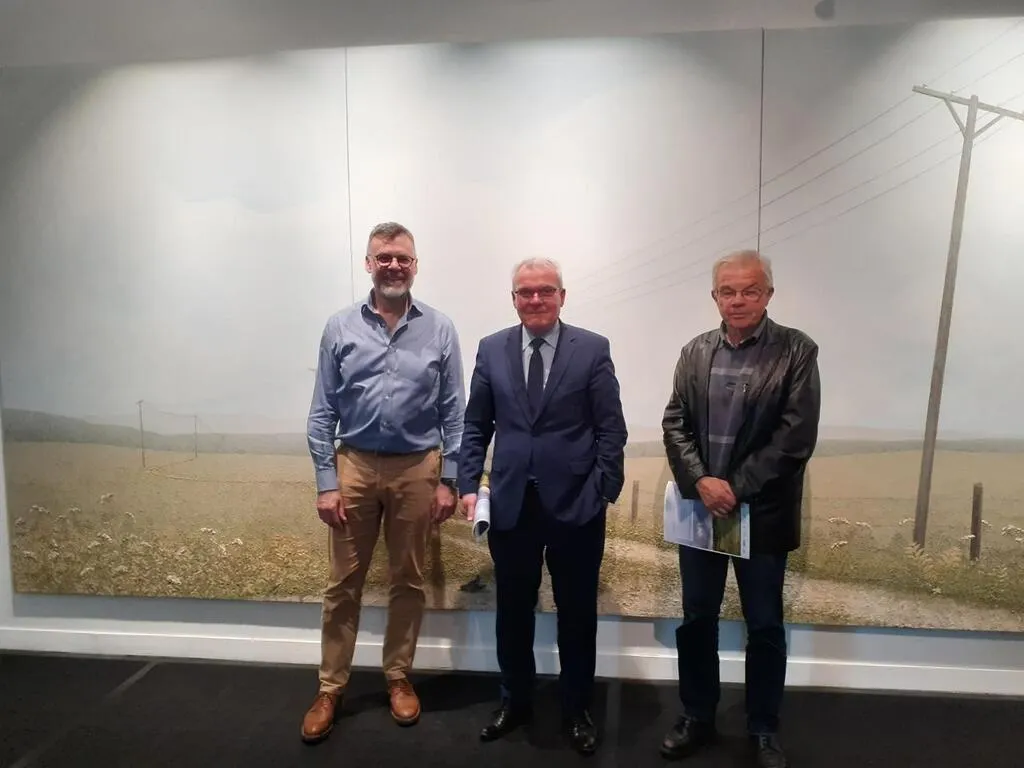 Raphaël Sikorski, directeur artistique du Festival de la Chéronne (à gauche) ; Didier Reveau, président de la communauté de communes de l’Huisne sarthoise, et Pierre Boulard, maire d’Avezé. © Ouest-France