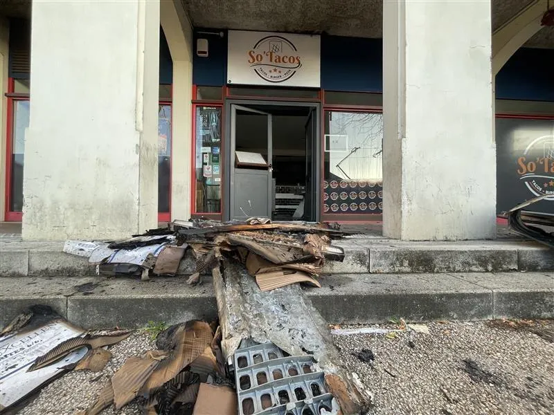 Le feu a pris dans le restaurant So Tacos après sa fermeture dans la nuit du jeudi 16 au vendredi 17 octobre 2025. © Le Maine Libre