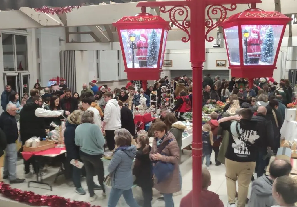 Sur l’esplanade de Belleville, les musiciens de la musique lucéenne sous la conduite de Ludovic tentent de faire entendre les partitions de leurs répertoires. L’animateur appelle les enfants à venir se faire photographier avec le Père Noël. Puis l’estaminet éphémère est sollicité pour fournir le vin chaud fumant. Les producteurs de fromages, charcuterie de montagne vantent la qualité de leurs produits pour les repas de fin d’année.