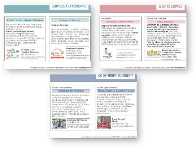 Les encarts publicitaires de « Une » et de « 4e de couverture » passent en bandeau pour gagner en clarté et s’harmoniser avec le contenu éditorial. Les produits rubriqués de contenu adoptent un habillage en colonne et en 3 couleurs, plus cohérent avec la nouvelle maquette.