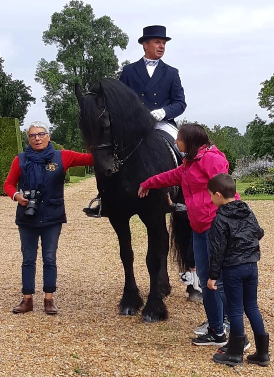 En fin de matinée dimanche le public a apprécié une démonstration de dressage d’un cheval frison, appartenant à Anita et Jacques Audry, amis et voisins des propriétaires du château. Jacques Audry a donné des explications sur cette race de chevaux qu’il élève au haras du Graffard. Il est venu avec Hibert dit Bibi, âgé de 19 ans et en pleine forme. « Vous pouvez vous approcher pour le caresser et merci pour les applaudissements, il adore ça » déclarait Jacques Audry aux visiteurs.