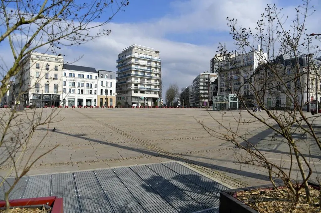 Place de la République, mardi 17 mars, 14 h 30. La place est bien vide © Le Maine Libre – Yvon LOUÉ