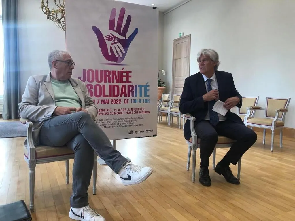 Aux côtés du maire du Mans Stéphane Le Foll, Yves Calippe, adjoint au maire à la solidarité, annonce plus de 70 associations pour la journée de la solidarité. © Le Maine Libre