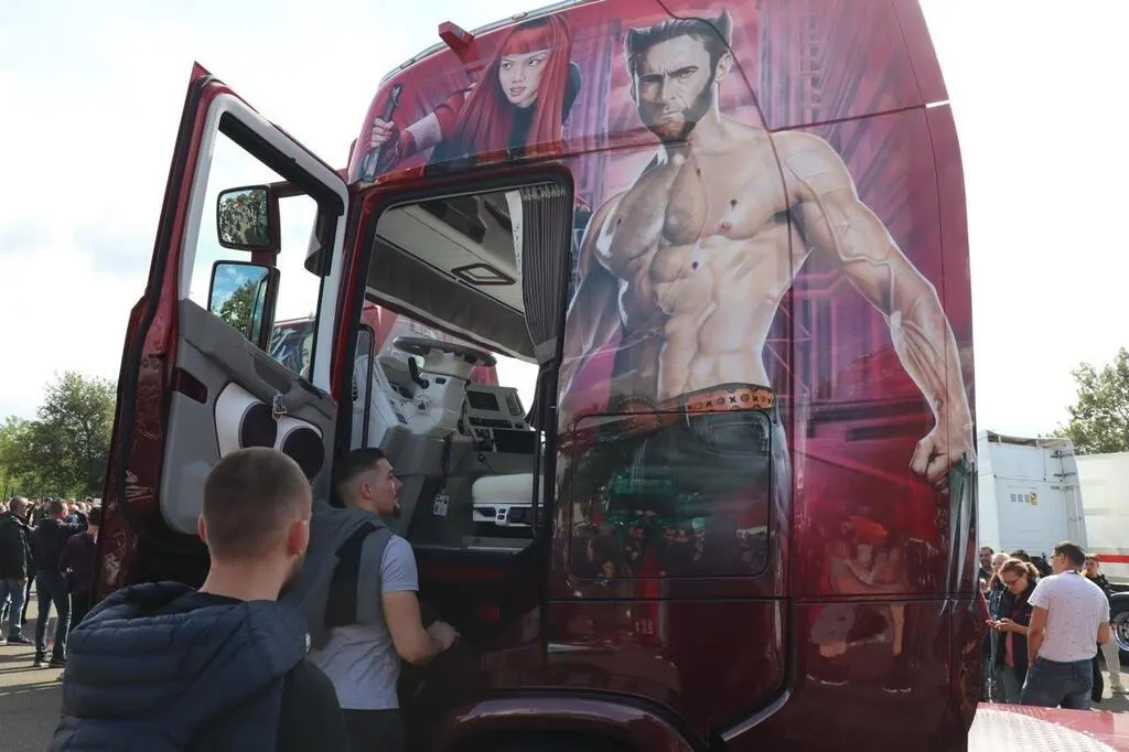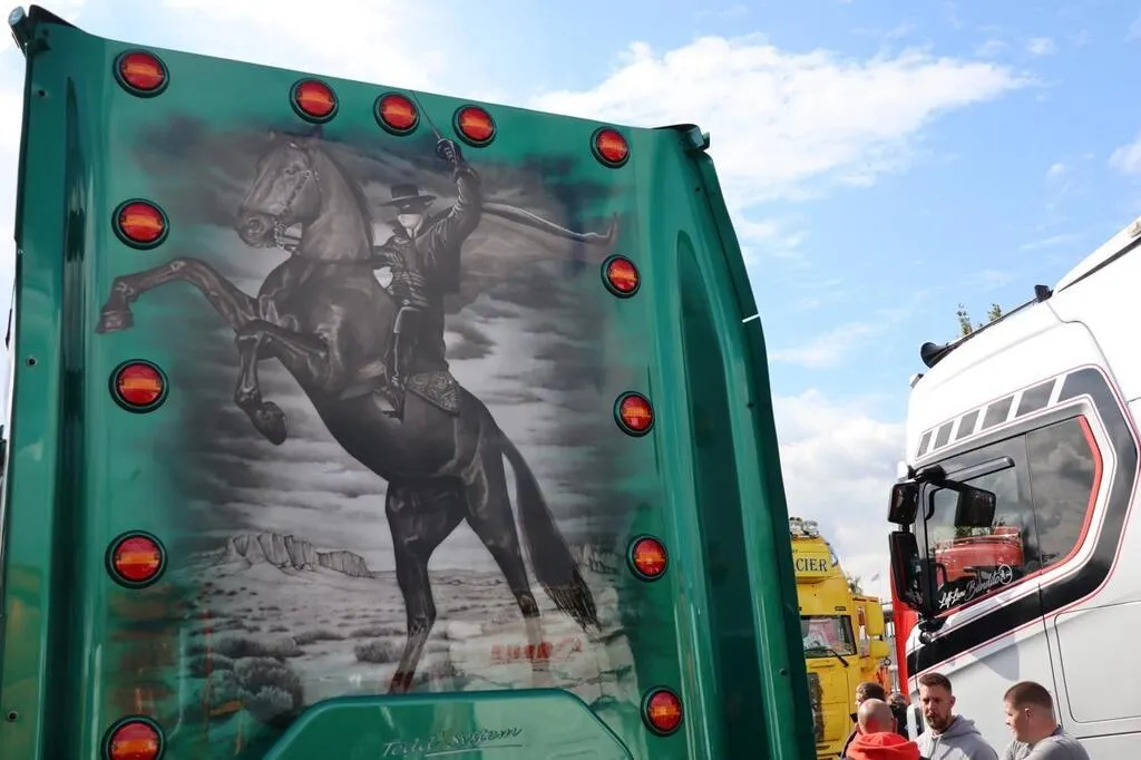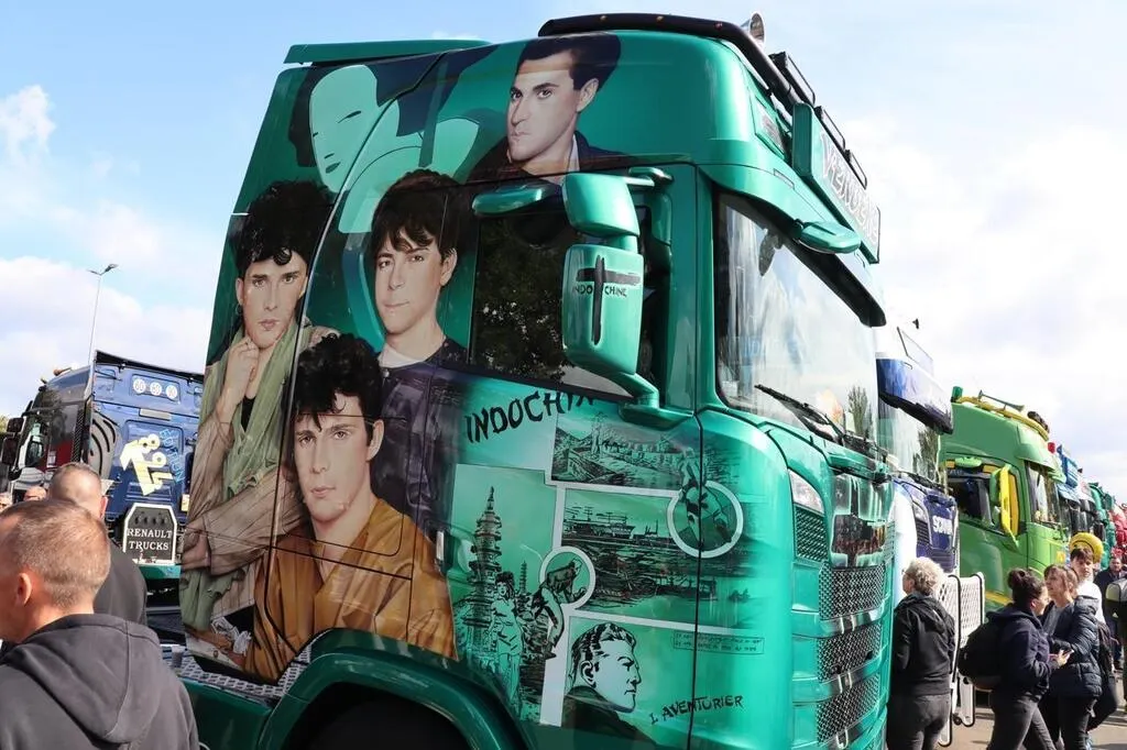Quelques heures avant le départ des 24 Heures camions, ce samedi 24 septembre 2022 sur le circuit Bugatti au Mans (Sarthe), dans les allées de camions soigneusement alignés, des photographes amateurs immortalisent Jean-Jacques Goldmann, Zorro, Lucky Luke, James Bond ou Jean Moulin reproduits sur les ...