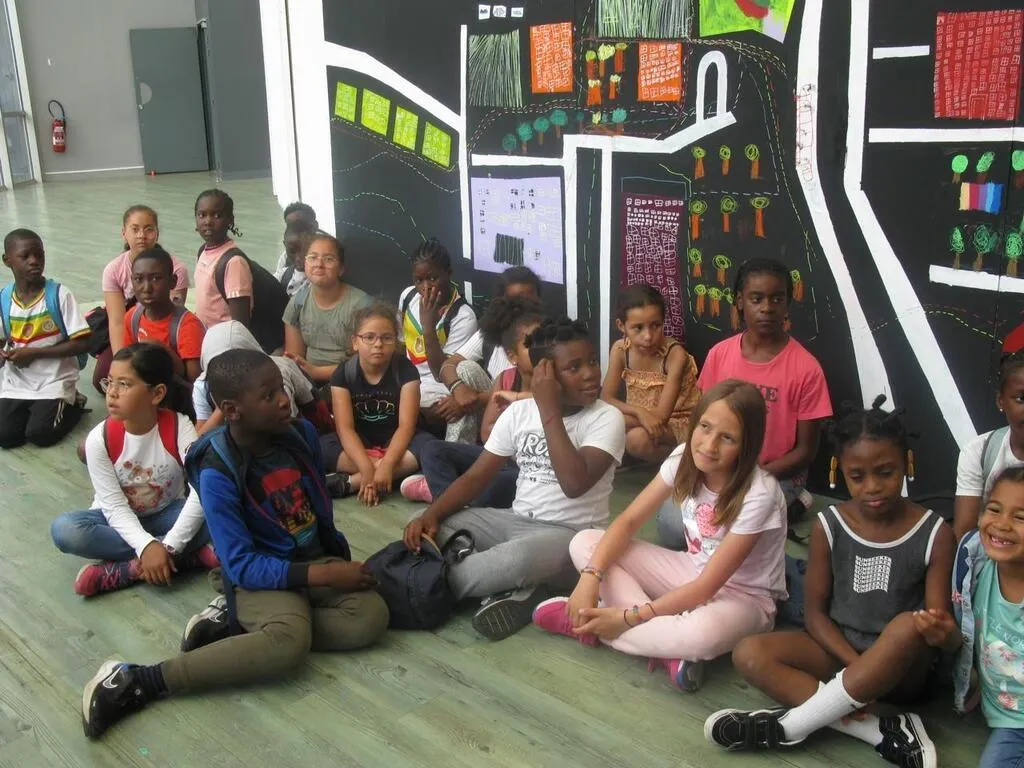 Les écoliers ont réalisé une fresque de leur quartier comme ils le voient avec ses couleurs. Ouest-France