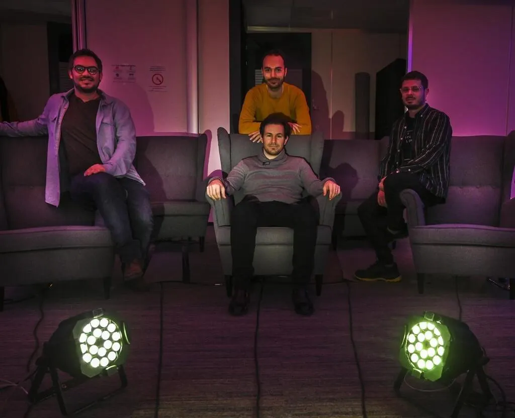 Les quatre créateurs de Metacoustic et de Sound to sight à l’origine des fauteuils sonores (de gauche à droite : Clément Lagarrigue, Antoine Châron, Florestan Gutierrez et Damien Lecoq). © Photo Le Maine Libre – Denis LAMBERT