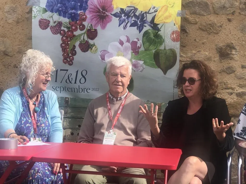 Aileen Sharpe, la nouvelle présidente d’Entre cours et jardins avec Dominique Jean, responsable des bénévoles, et la chanteuse Diana Higbee. Ouest-France