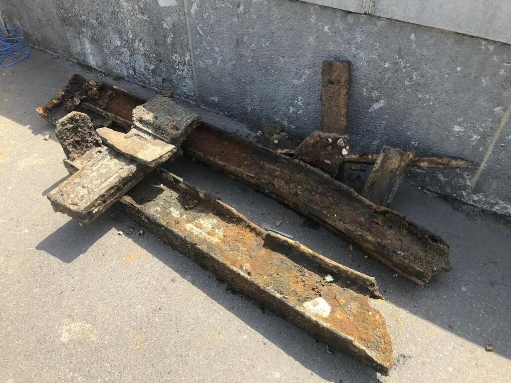 Le Mans. De nouveaux vestiges du pont en X et de l’ancien pont Yssoir extraits de la rivière... |