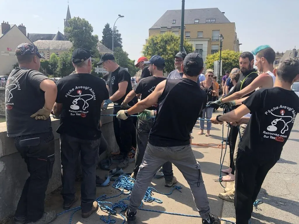 En septembre 2021, l’association Pêche Aveugl’Aimant avait retiré de la Sarthe de gros morceaux de fonte qui constituaient le garde-corps de l’ancien pont Yssoir, détruit en août 1944 par l’armée allemande en même temps que le pont en X. Une nouvelle opération, ce dimanche 19 juin 2022, a permis de remonter des eaux de nouveaux morceaux enfouis des deux anciens ponts.