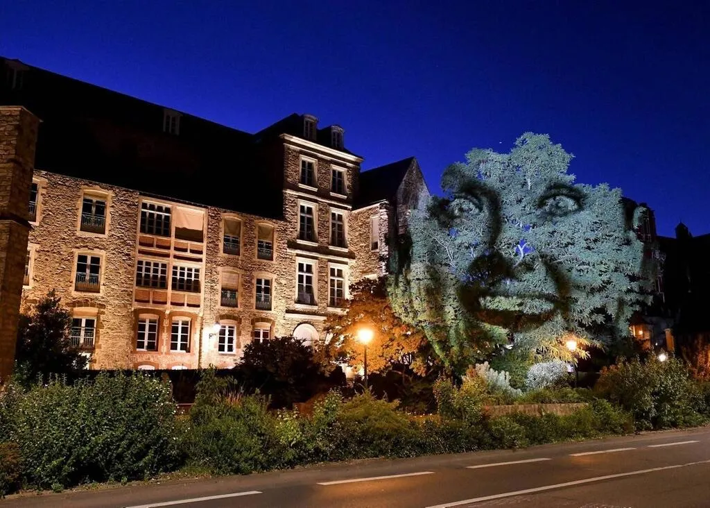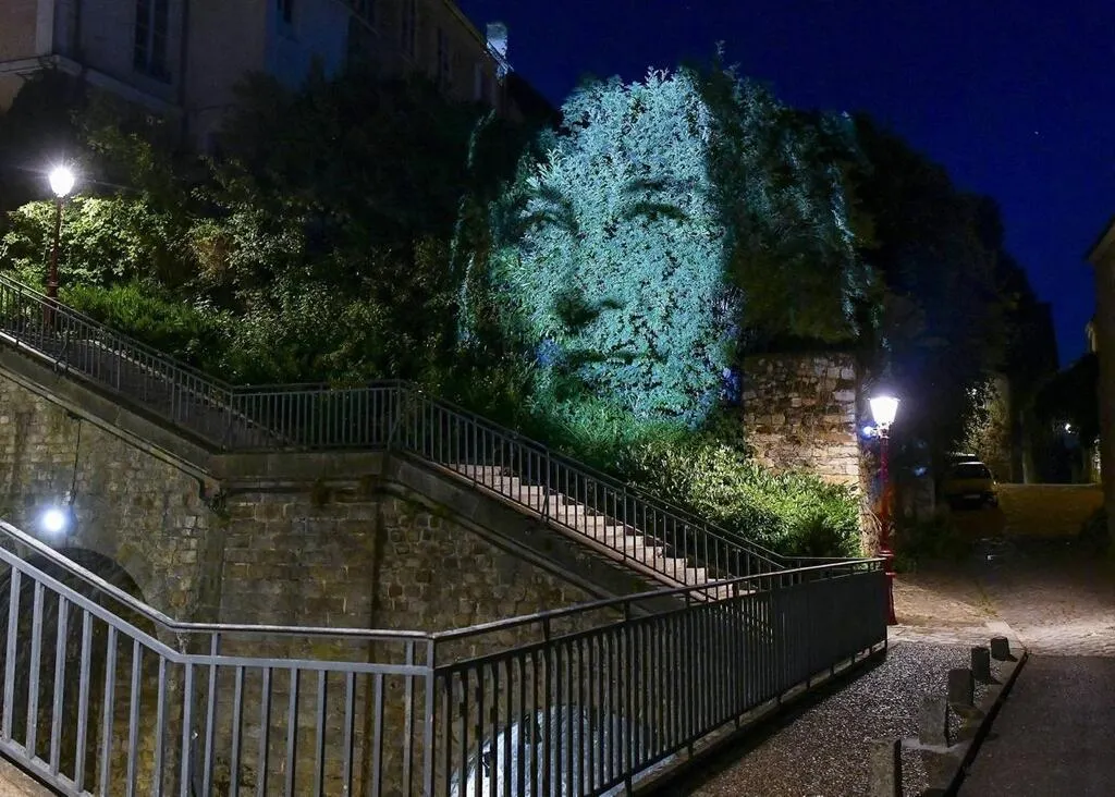 Cette année, on retrouve également des visages projetés dans les arbres comme en 2019. Le photographe est le même : Philippe Écharoux. Mais les visages sont nouveaux. Ce sont ceux de personnes qui ont été en première ligne durant la crise sanitaire : soignants, éboueurs, commerçants…