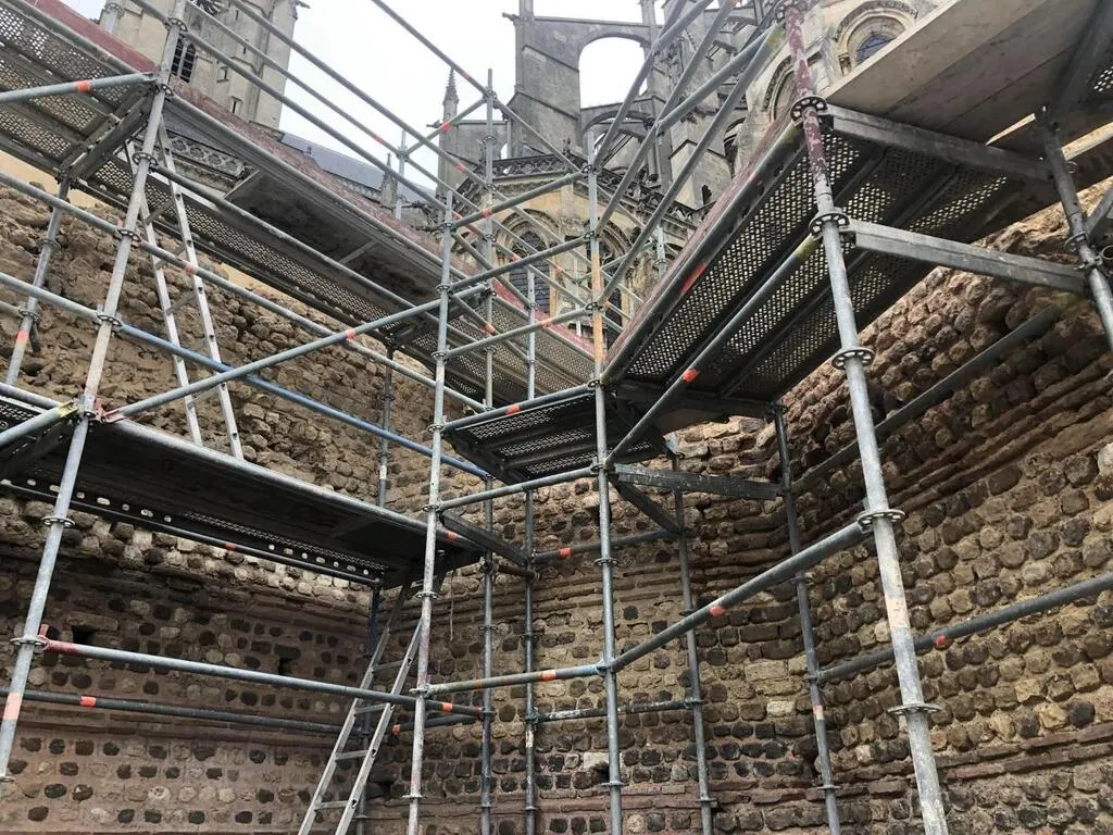 La tour Saint-Michel a été redécouverte à la faveur de fouilles archéologiques de l’Inrap entre 2014 et 2020, dans les jardins de la cathédrale du Mans. © Le Maine Libre
