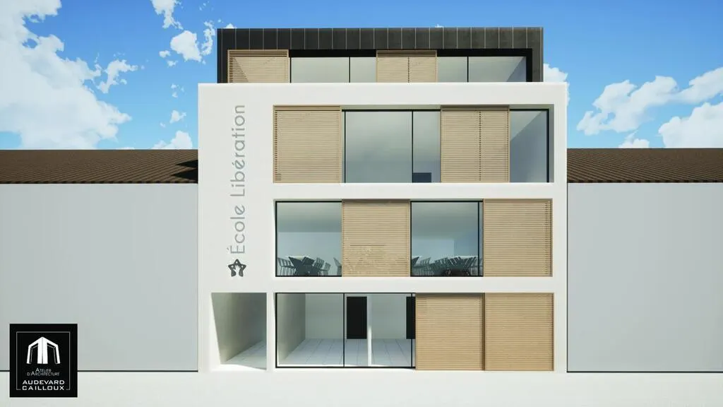 La vue de l’école depuis l’avenue de la Libération. © Atelier d’architecture Audevard Cailloux et cabinet d’économie CMB
