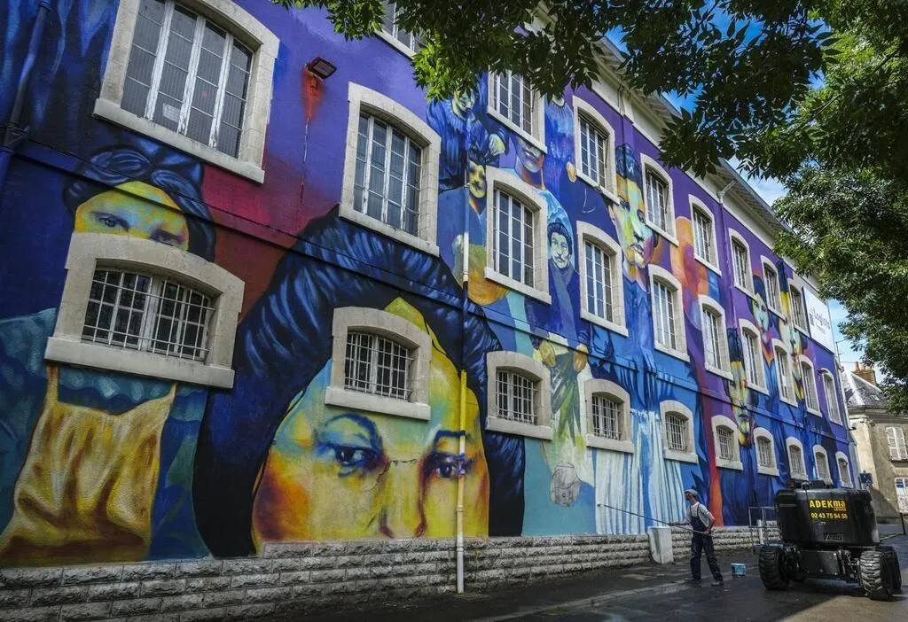 D’autres fresques, disséminées dans la ville, sont à découvrir en ce moment. Les visages d’ouvrières sarthoises du street artiste Heol Jeffroy par exemple, qui ornent la manufacture des tabacs.