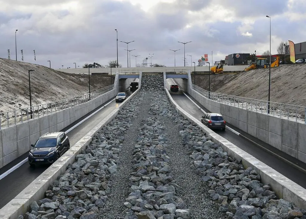 Les deux voies souterraines permettent désormais de franchir le rond-point de l’Océane, dans les deux sens, vers Mans et vers Alençon, en passant en dessous. © Photo Le Maine Libre - Yvon LOUE