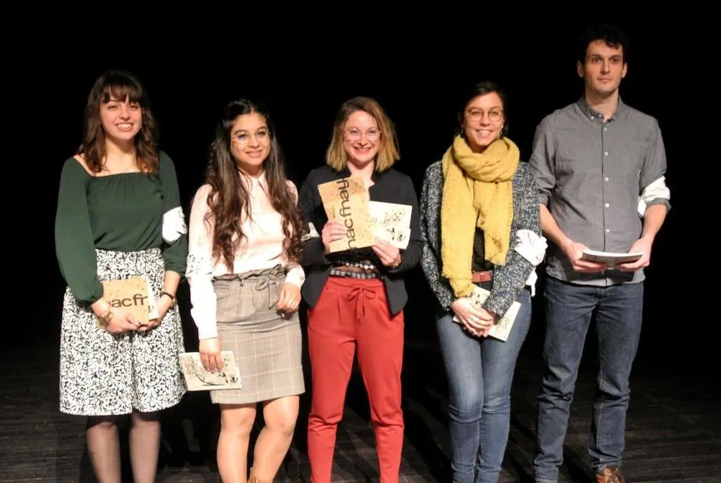 De gauche à droite : Loredana Lancini (2e), Wafa Safar, Lucile Riabof (prix du jury et du public), Charlotte Saverna (3e) et Robin Billard. © Le Maine Libre