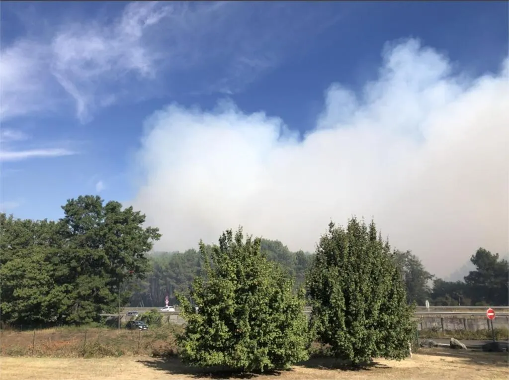 Des témoins ont signalé des flammes tout au bord de la route, laquelle a été par moments envahie par la fumée, rendant la circulation périlleuse.