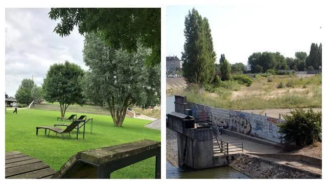 À gauche, le parc de l’île aux planches aujourd’hui. À droite, l’île en friche, ancienne propriété d’EDF-GRDF. © OUEST-FSRANCE