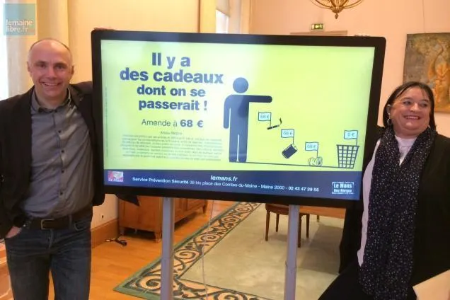 Le Mans. L'opération "Le Mans ville propre" est lancée © Christophe Counil, adjoint au Maire en charge de la sécurité publique, de la vie des quartiers et Renée Kaziewicz, conseillère déléguée à la propreté, ont dévoilé leur programme en matière de prévention et de répression pour rendre la ville plus propre. Photo ML