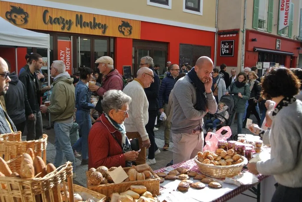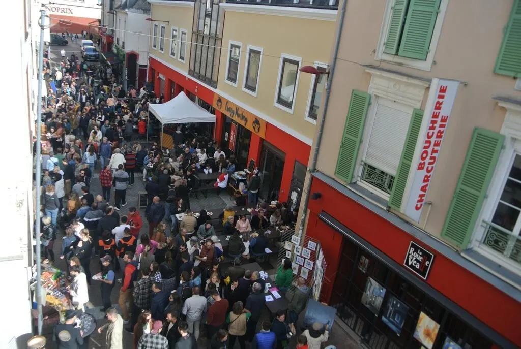 Dimanche matin c’était probablement l’endroit le plus animé de la ville ! Les commerçants de la rue la plus gourmande (Dr-Leroy) proposaient un brunch. Chacun pouvait acheter ce qu’il voulait chez les quatorze artisans exceptionnellement ouverts. Et s’installer sur les grandes tables mises ...