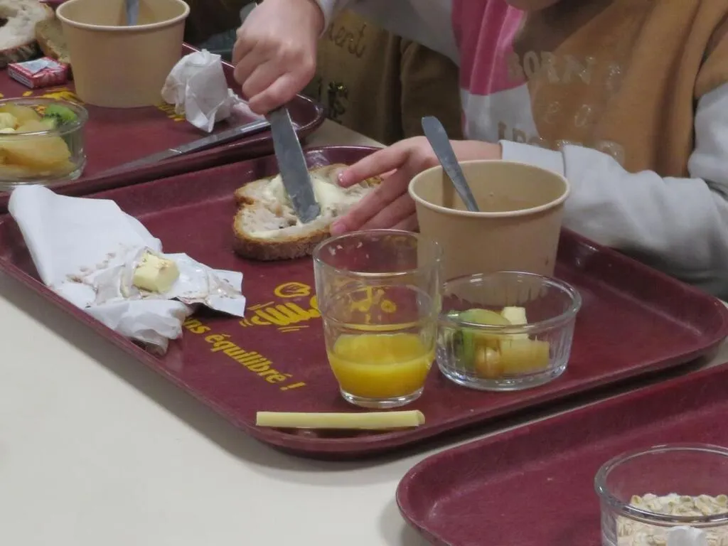 Le petit-déjeuner servi à l’école est aussi l’occasion pour les enfants de distinguer les différents apports d’un petit-déjeuner équilibré : calcique (laitage), vitaminique (fruits) et énergétique (pain). © Ouest-France