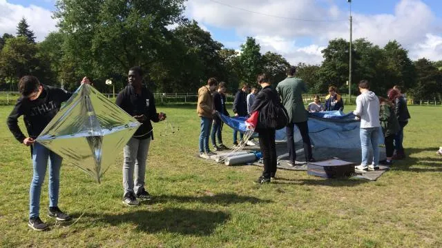 Préparation par les élèves du lycée Touchard-Washington pour le vol du ballon-sonde. © Ouest-France