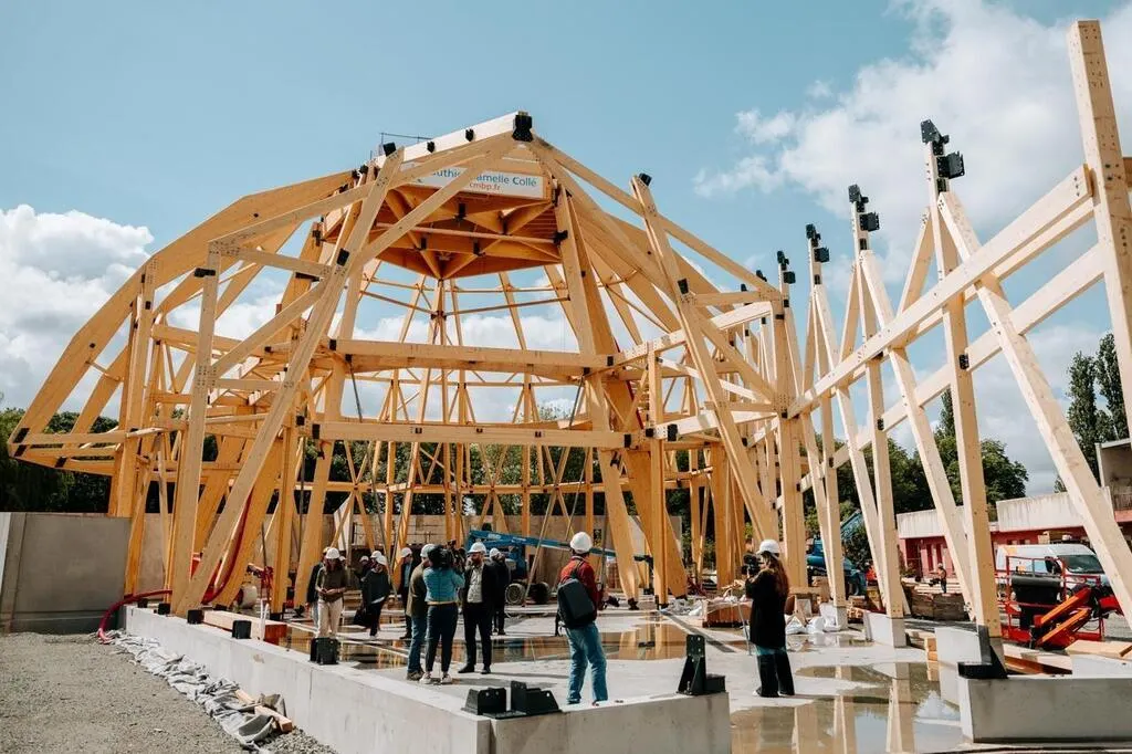 Les fondations sont bien en place. Et après tout le travail de terrassement, le savoir-faire des charpentiers a fait son œuvre. L’ossature bois du futur bâtiment ...