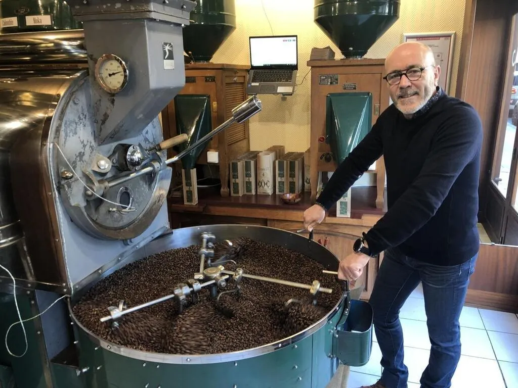 Henri Lemarié, ici devant le torréfacteur, ouvre une deuxième boutique Cafés BOC pour mieux présenter ce produit largement consommé mais finalement méconnu. © Photo Le Maine Libre