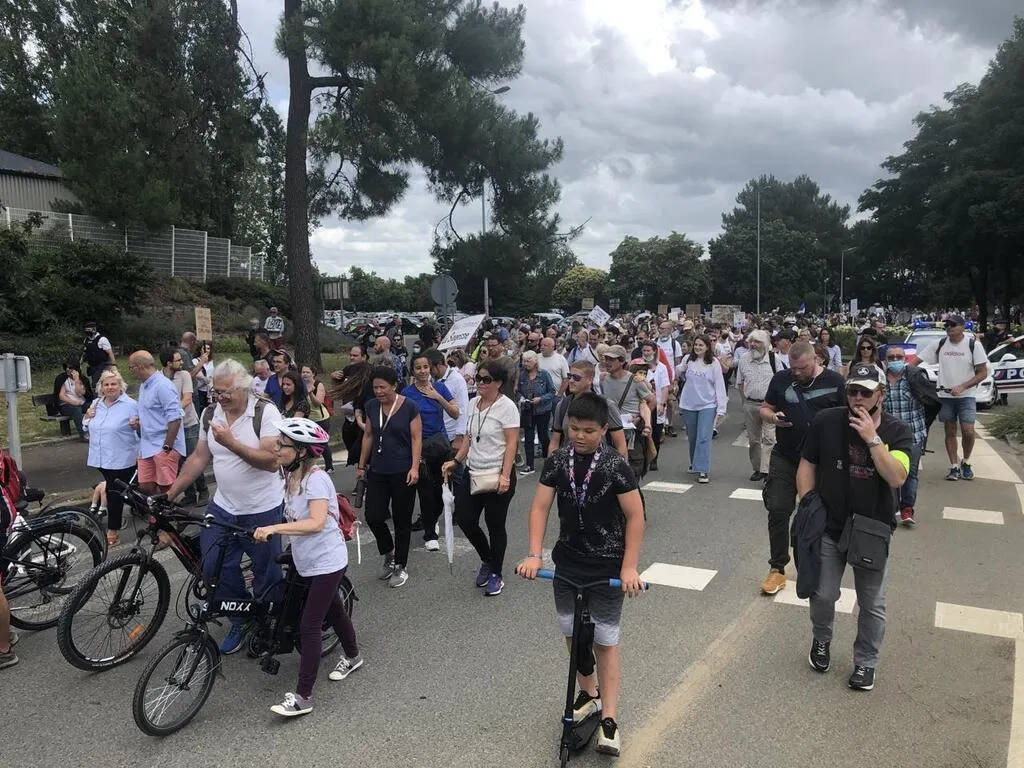 Comme ce fut le cas la semaine dernière, c’est au grand rond-point du centre des expositions, au Mans, que le rendez-vous avait été donné aux manifestants en début d’après-midi ce samedi 24 juillet 2021. Soit à une bonne centaine de mètres de ceux qui faisaient la queue pour aller se faire vacciner.