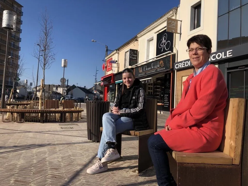 Devant les commerces de la place de la Chasse-royale, au Mans, les places de parking ont disparu, au profit de jeunes arbres, de fauteuils et bancs arrondis en bois et même ...