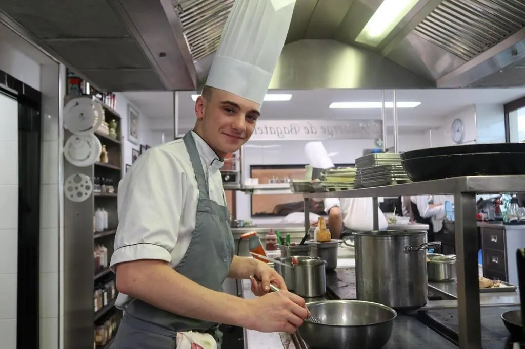 Kilian Lemoine, (deuxième en partant de la droite) a choisi un étoilé pour y faire son apprentissage, pour y travailler des produits frais au sein d’une brigade. © Photo archives Le Maine Libre Denis LAMBERT