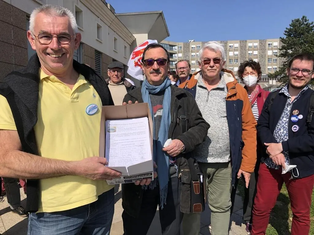 Philippe Keravec (à gauche) et des membres du collectif ont remis les 10 000 pétitions collectées depuis 2019. © Ouest-France