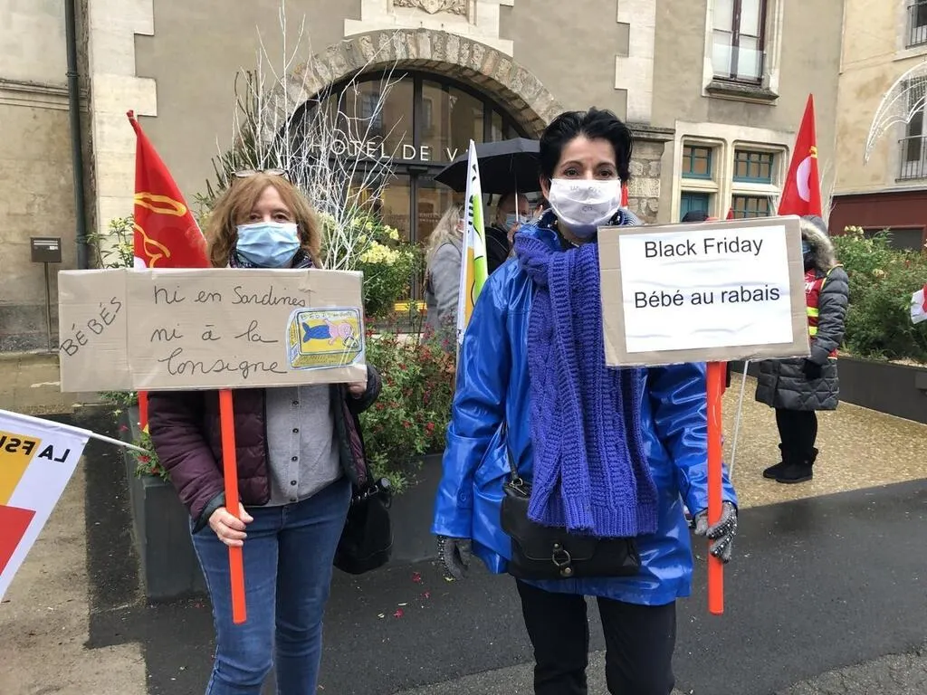 Une cinquantaine de personnes travaillant dans le domaine de la petite enfance se sont réunies ce jeudi 3 décembre 2020 en matinée devant la mairie du Mans. Elles protestent contre les conditions d’accueil des enfants et contre un projet du gouvernement.