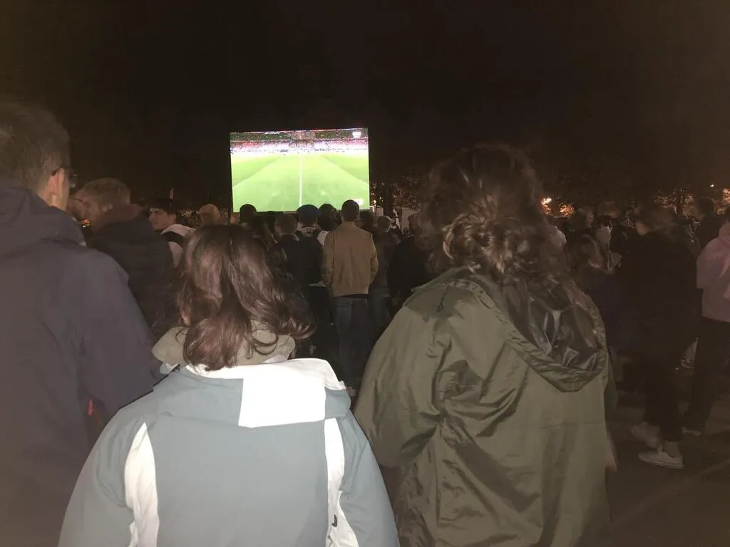 Le Mans. Un millier de fans du ballon ovale face à l’écran géant pour soutenir les Français... |