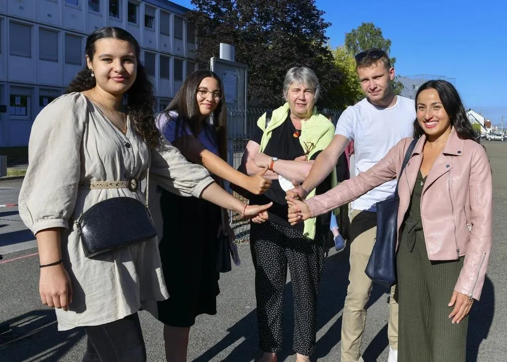Véronique Cormier heureuse de revoir ses élèves avant de quitter le lycée. Professeure et lycées quittent définitivement l’établissement. © Photo Le Maine Libre – Yvon LOUÉ