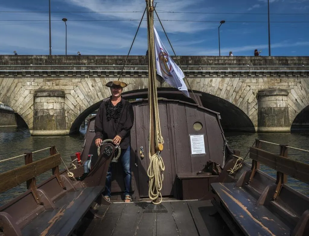 Le Mans, mercredi 26 août 2020. À bord de la Rêveuse de Saint-Nicolas, Jean-Yves, le capitaine, explore l’histoire du Mans de 1811 à 1880. © Le Maine Libre – DENIS LAMBERT