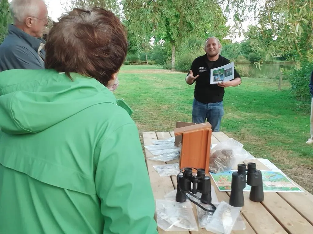 Johannic Chevreau initie le public à la connaissance des oiseaux lors du lancement de l’ABC Haute Sarthe Alpes mancelles, au bord de l’étang communal de Saint-Paul-le-Gaultier. © Ouest-France