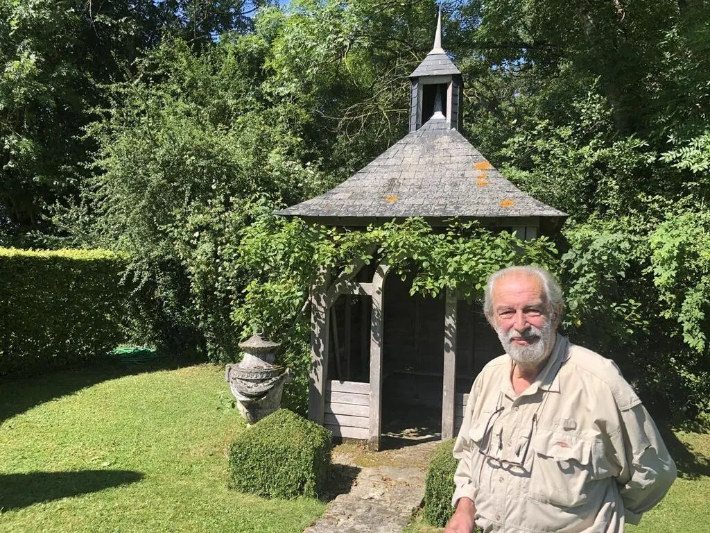 Thibaut de Reimpré, en 2019, devant l’élégant petit kiosque dans son jardin remarquable à Crannes-en-Champagne. ? © Archives Ouest-France