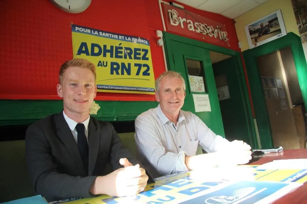 Romain Lemoigne et Pierre Vaugarny, deux représentants du bureau départemental du Rassemblement national en Sarthe. © Ouest-France