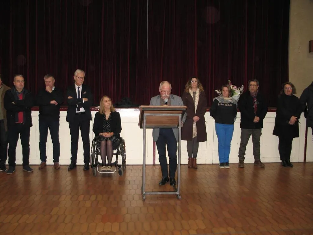 La population de Conlie est venue en nnombre assister à la traditionnelle cérémonie de vœux pour laquelle Christian Lemasson, maire était accompagné de son conseil municipal, de Valérie Radou conseillère départementale et présidente de 4CPS et de Joël Métenier, conseiller départemental.