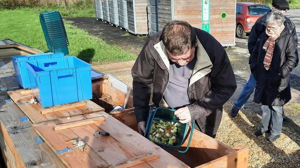 Jean-Yves, qui habite en appartement, a apporté ses déchets et a inauguré le bac à compost. Ouest-France