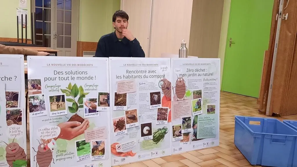 Félix Lethielleux, chargé de mission aux biodéchets sur le secteur, a expliqué comment déposer ses déchets dans le bac à compost mais aussi quels déchets et sous quelle forme. © Ouest-France