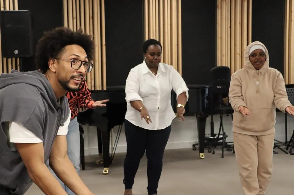 Le danseur professionnel Houssni Mijem a offert un cours particulier aux bénéficiaires d’Alpha Sablé venus à la rencontre de la compagnie Hervé Koubi en marge du spectacle Sol Invinctus programmé à l’Entracte, samedi 26 avril 2025. © Ouest-France