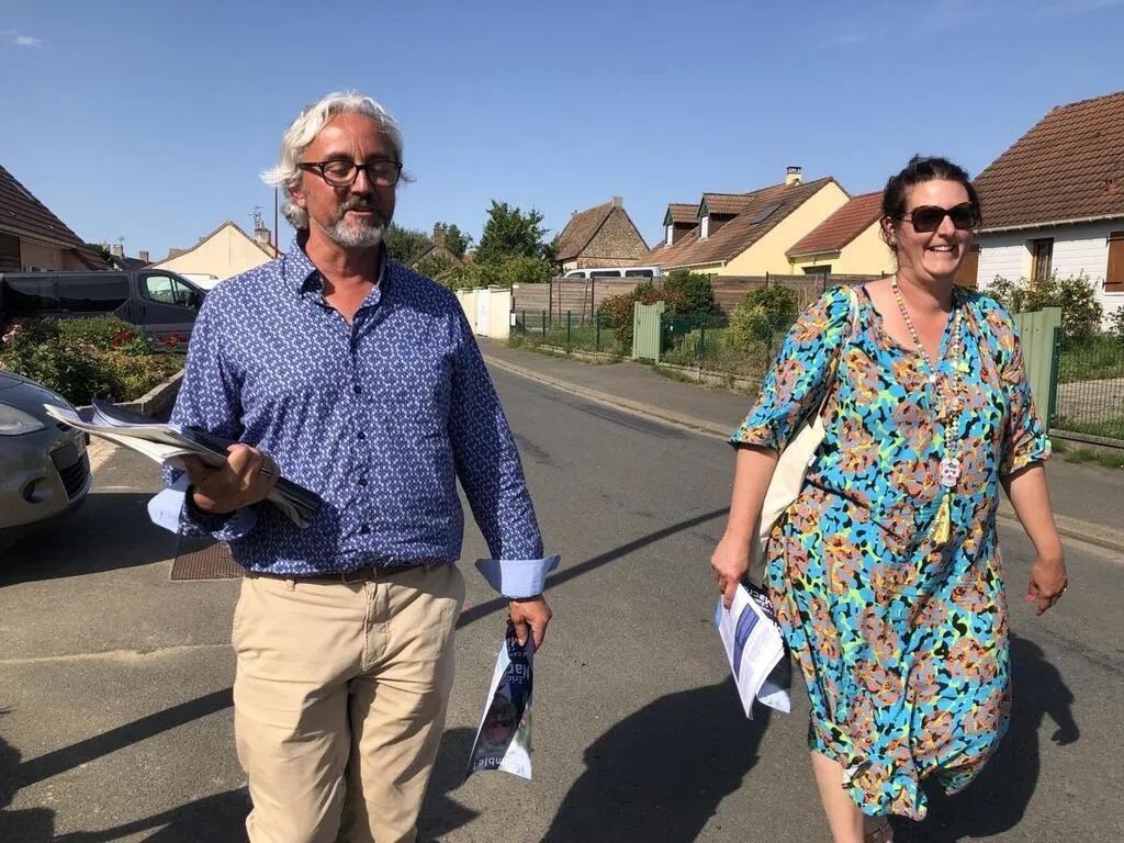 Le candidat RN et son suppléant Christophe Hannier distribuent quelques tracts aux passants. Sur la place, un homme l’interpelle avant qu’il ne dégaine. On va voter pour vous !